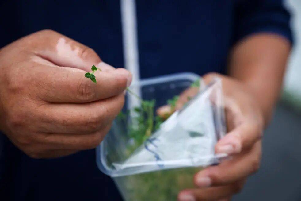 走进定西马铃薯研究所的组培室=•,摆满货架的组培盒透着绿意,组培盒里长出几厘米高的嫩苗便是马铃薯脱毒种苗。