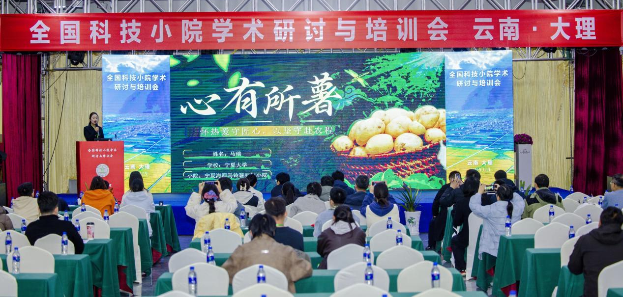 12月13日▽••,在“全国科技小院学术研讨与培训会”的舞台上•▼,聚光灯下的马瑞略显紧张却格外坚定。这位来自宁夏海原马铃薯科技小院的研二学生,正分享着自己从“逃离乡土”到“扎根泥土”的蜕变故事。当主持人宣布她荣获研究生专场竞赛二等奖时,她满怀激动与感恩。这个奖项▪•,不仅是对一个青年学子的肯定△,更是一段关于成长、选择与承诺的见证。