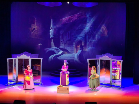 将侧台有限、机关有限、转换困难的民族音乐厅空间转化为戏剧舞台,导演兼视觉总监赵晓宇接手的是一项看似不可能完成的任务。他给出的答案是利用四块▷◁▽“三折镜”☆=▷。镜子通过折叠▲▷▪、移动●-,与投影、灯光配合,灵活构建出灰姑娘的阁楼•、皇宫舞会等不同场景,以最精简的装置承担起最复杂的叙事功能。更具挑战性的是,张亚峰要求演员参与布景变换☆,不用黑衣人上台操作。合唱队员与动物角色需在唱演的同时踩着音乐节奏推动镜片、精准换景,最终这段高难度协作成为现场效果最佳的段落之一▪。