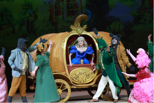赵晓宇还决定不用笨重的实景大机关,而是使用轻巧的视觉组合制造流动奇观。例如,把南瓜马车推到舞台后不再移动,但通过周围流动的投影◇△-、歌舞和灯光,营造出“车不动▷,但世界在动■▷”的奇观;水晶鞋试鞋环节则通过光影与音效的对比,高效地完成了戏剧表达。当无法依赖大机关大装置时,创作反而被迫回到艺术本质——用光影、调度与表演去打动观众。这次的视觉设计或许是赵晓宇职业生涯里最“克制”的一次,却也是最“纯粹”的一次☆▷。
