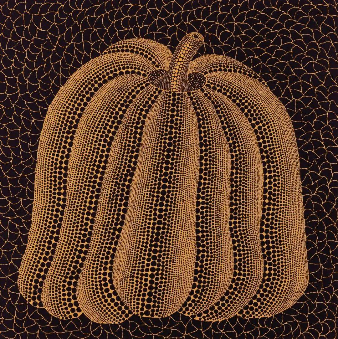 在这件艺术家南瓜主题的代表作《南瓜 (HRU)》中,草间弥生将其标志性的波点图案覆盖南瓜表面:无限重复的小圆点如同种子一般-△,象征着无尽的繁衍和生命的循环-,讲述着大地丰饶、生命繁茂的故事。