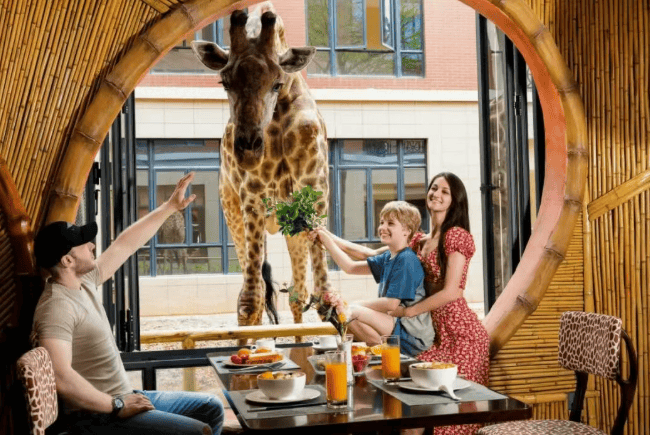 畅游童话世界□,入住野奢秘境△=▼,沐浴晨光醒来,长颈鹿探头问好•■▼;坐在九天湖畔★•,惬意吹风品茶○▽◇,随手一拍都是假日大片。