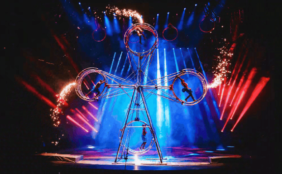 共赏金奖马戏,穿越时空奇境☆,空中飞人凌空飞跃,生死魔轮旋转如风!水陆舞台特效拉满=▪,声光电交织成奇幻宇宙,全场仰头屏息,共赏马戏艺术的魅力。