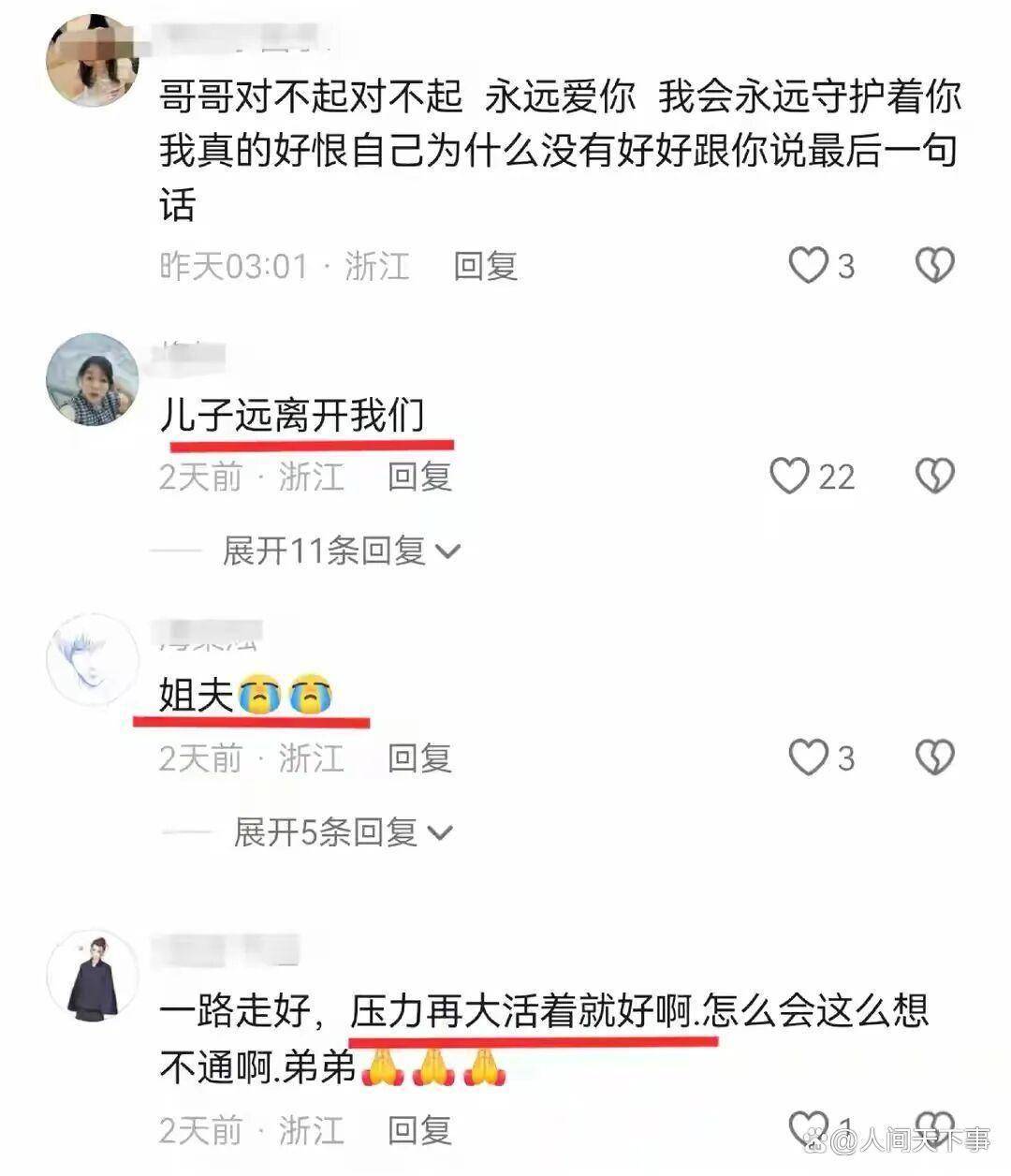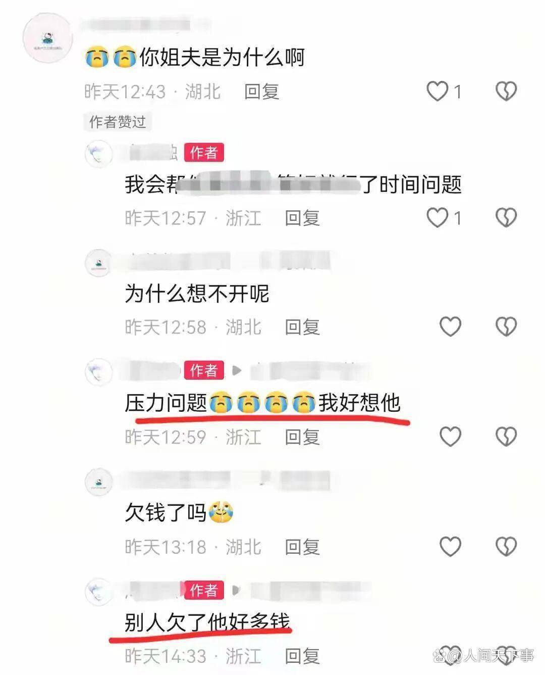 从亲友的留言里◇,我们能拼凑出他最后的状态:母亲在评论区写下“儿子远离开我们”••◁,满是白发人送黑发人的悲痛;妹妹哭诉着“哥哥对不起,没和你说最后一句话▼●◇”☆▼;而小舅子的留言更是戳中了关键,姐夫是因为压力,别人欠了他好多钱★。