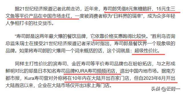 同样来自日本的另一家品牌Kura就没看透这套逻辑=,照搬日本模式,价格降不下来,菜单也缺乏本地化调整,结果两年时间在中国亏掉八千多万▼,最后只能关门撤退。
