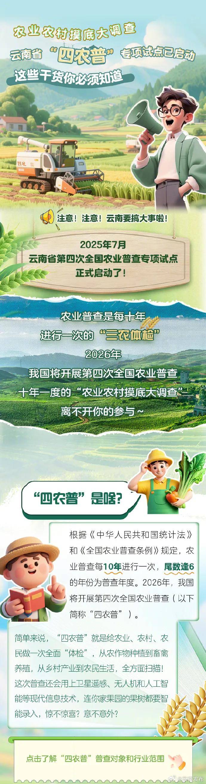 2025年7月,云南省第四次全国农业普查专项试点正式启动○▪•!农业普查是每十年进行一次的“三记体检”=,