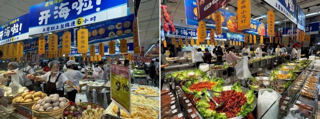在家家悦调改后的超市门店中…▪,其生鲜销售占比近70%●=,其中,熟食、面食、烘焙构成的“熟食加工品类黄金三角”,在整个大生鲜占比中▷■☆,贡献了约15%的销售额,成为吸引主流客群、提升复购率的关键◁■•。