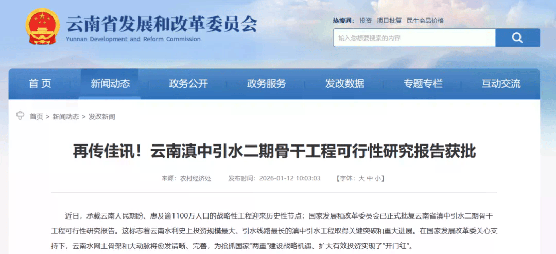 近日○△■,国家发展和改革委员会正式批复云南省滇中引水二期骨干工程可行性研究报告。这标志着云南水利史上投资规模最大、引水线路最长的滇中引水工程取得关键突破和重大进展。