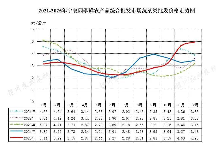 基于对2021年1月至2025年12月宁夏四季鲜农产品综合批发市场各类农产品批发价格与零售价格的逐月监测数据▽□,现就“十四五”期间银川市主要农产品市场价格行情形成分析报告如下: