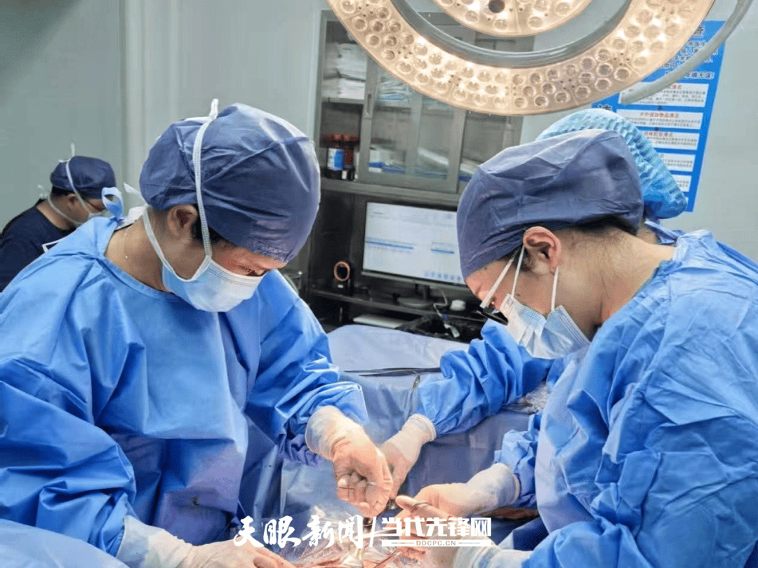 广医四院产科专家黄键宁(左一)在织金县医院开展手术示教。(受访单位供图)