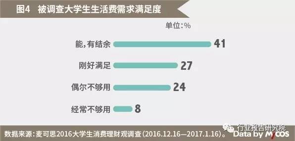 在被调查学生中,41%的学生生活费能够满足日常需求,并有结余。超三成大学生曾入不敷出▽▪☆。调查显示,24%的学生偶尔生活费不够用,8%经常不够用○。
